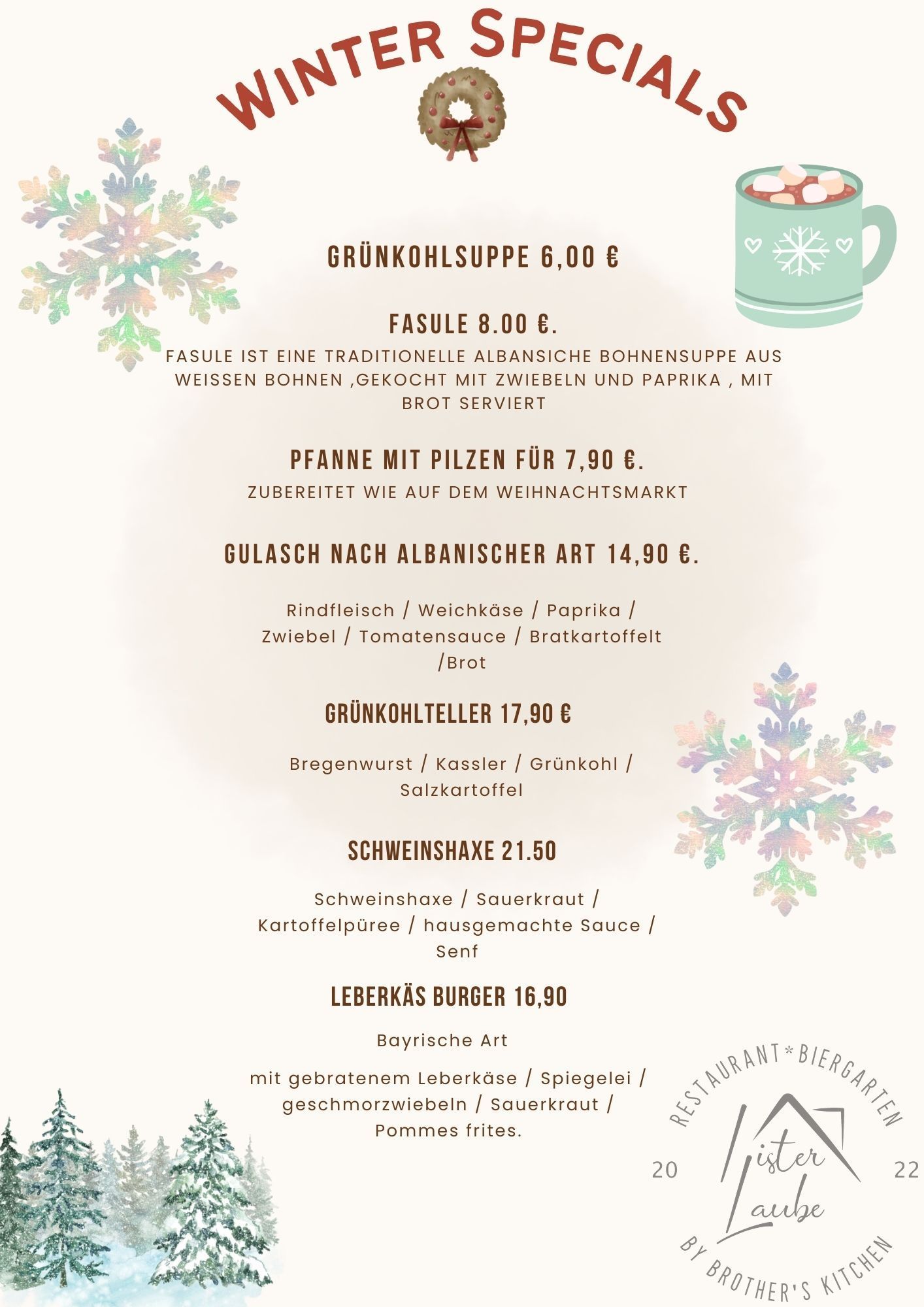**15.09.2025 bis 19.09.2025 :** Wir haben von Montag, dem 15. September, bis Freitag, dem 19. September, geschlossen, da wir unsere Küche umbauen. Wir freuen uns darauf, Sie ab Samstag, dem 20. September, wieder begrüßen zu dürfen. Vielen Dank für Ihr Verständnis. Ihr Team von Lister Laube.