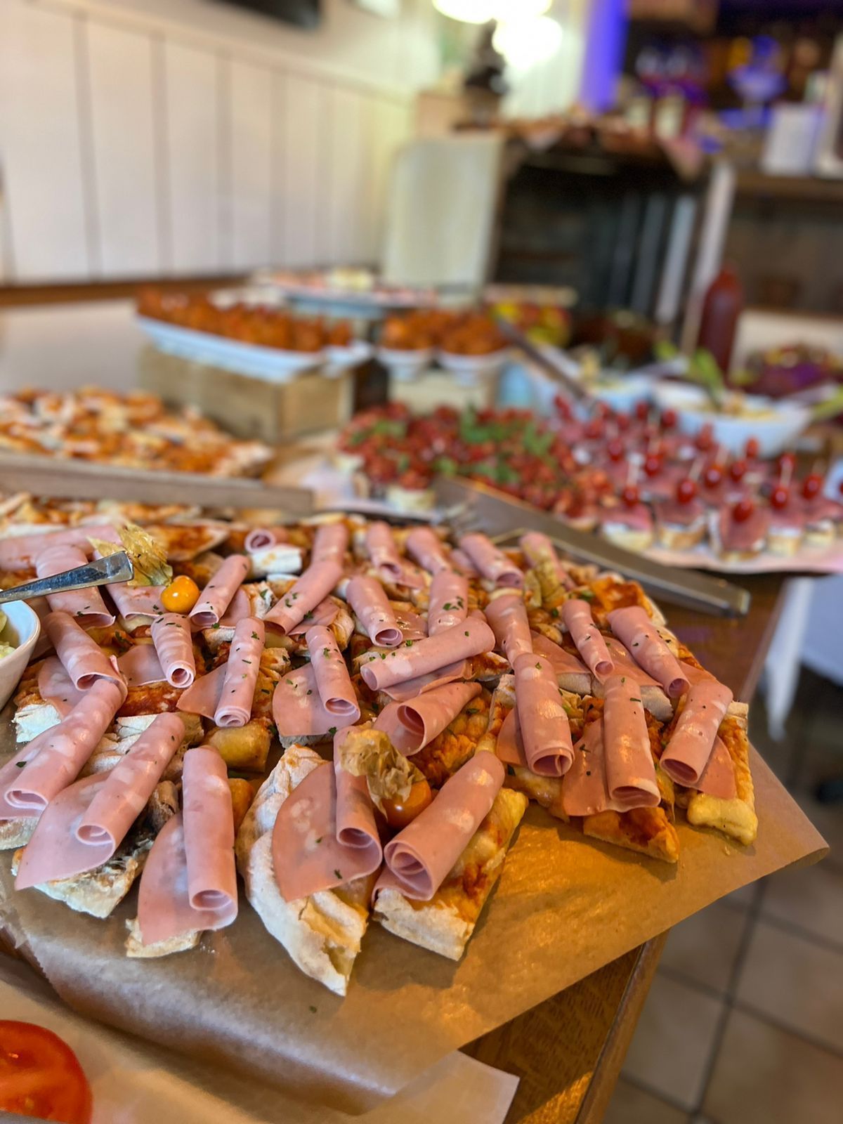 Unsere traditionelle und mediterranes Küche bietet eine Vielzahl leckerer, liebevoll zubereiteter Leckerbissen für Sie. Hervorragende, lokale Speisen und abwechslungsreiche, regionale Gerichte erwarten Sie bei uns. Genießen Sie alkoholische Getränke sowie begehrte Schnitzel-Gerichte oder Fisch-Gerichte. Unser Obst und unsere Torten verwöhnen Sie zwischendurch oder als Nachspeise. Schauen Sie bei uns für ein tolles Mittagessen vorbei. Profitieren Sie von unserem kostenlosen WiFi, um Ihre Bilder zu teilen. Die Kinderecke sorgt dafür, dass Ihr Nachwuchs gut unterhalten ist, während Sie Ihr Essen genießen
